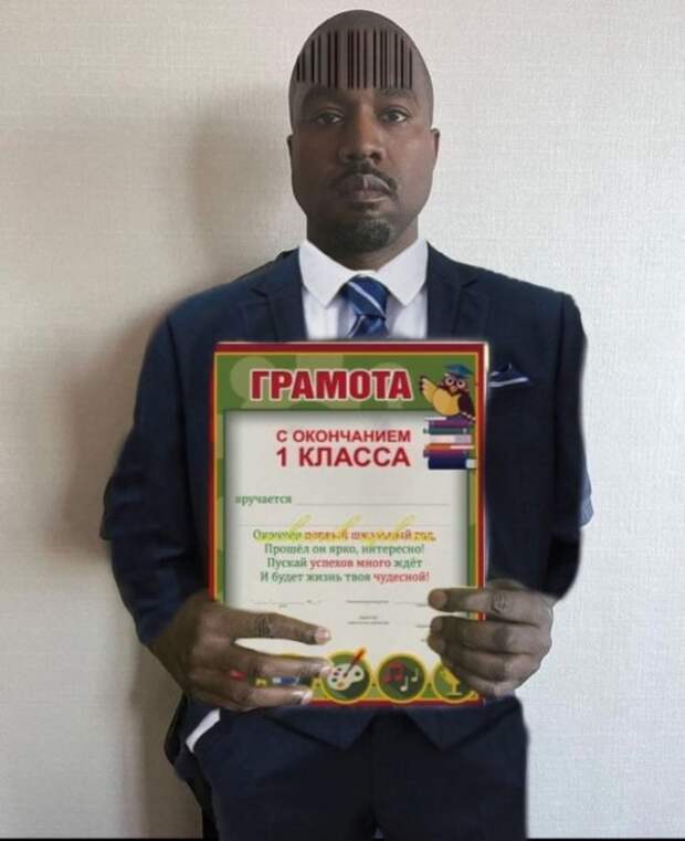 А здесь ему еще пририсовали модную в сельских российских глубинках, прическу